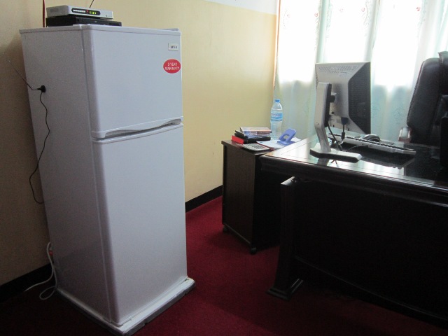 | Ofisi ya mkurugenzi wa kituo kwa muonekano wa ndani | Fridge | King`amuzi na DVD Deck |